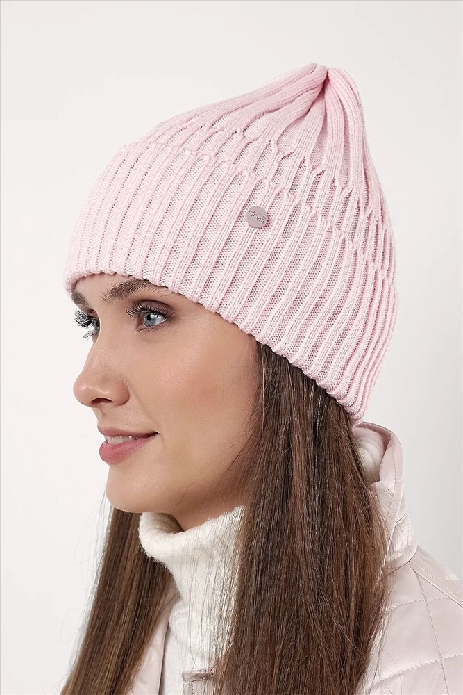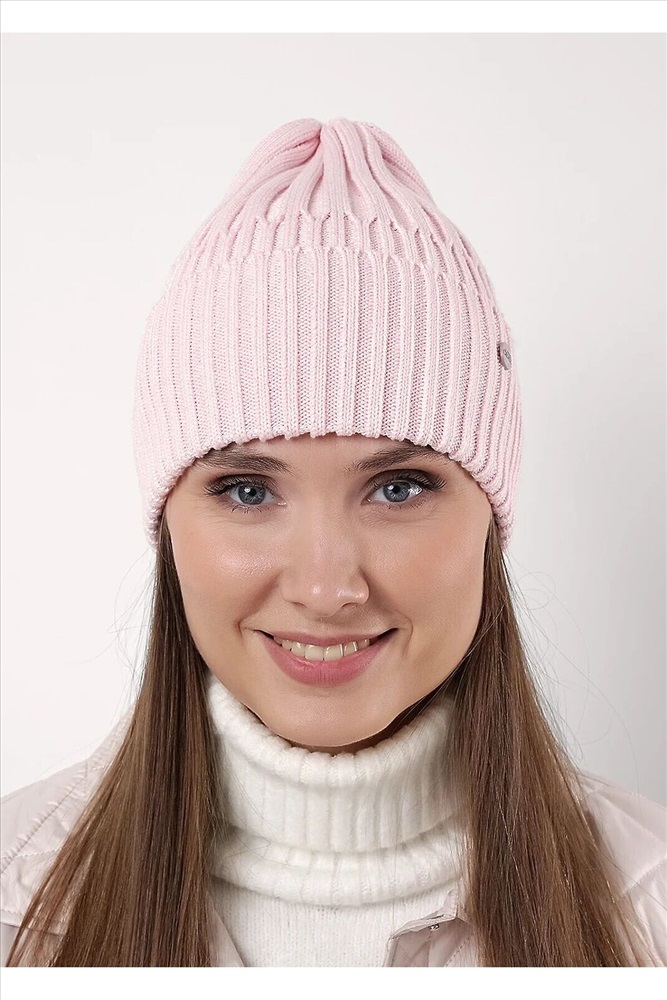 Женская шапка однослойная с отворотом, без подклада, декорирована стильной нашивкой. Изготовленная из хлопка. Идеальный вариант на осень, весну.