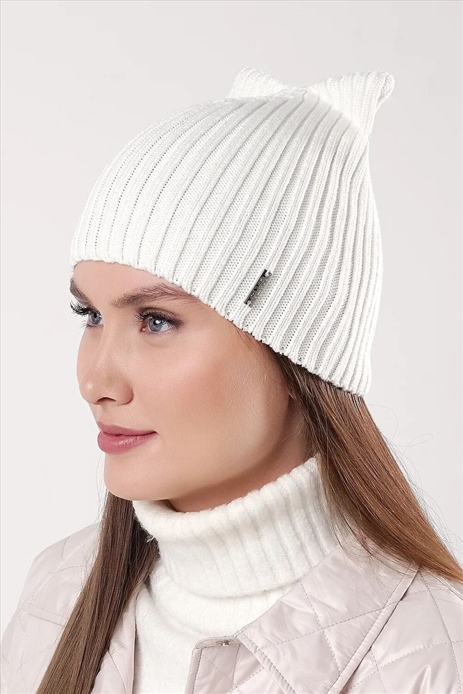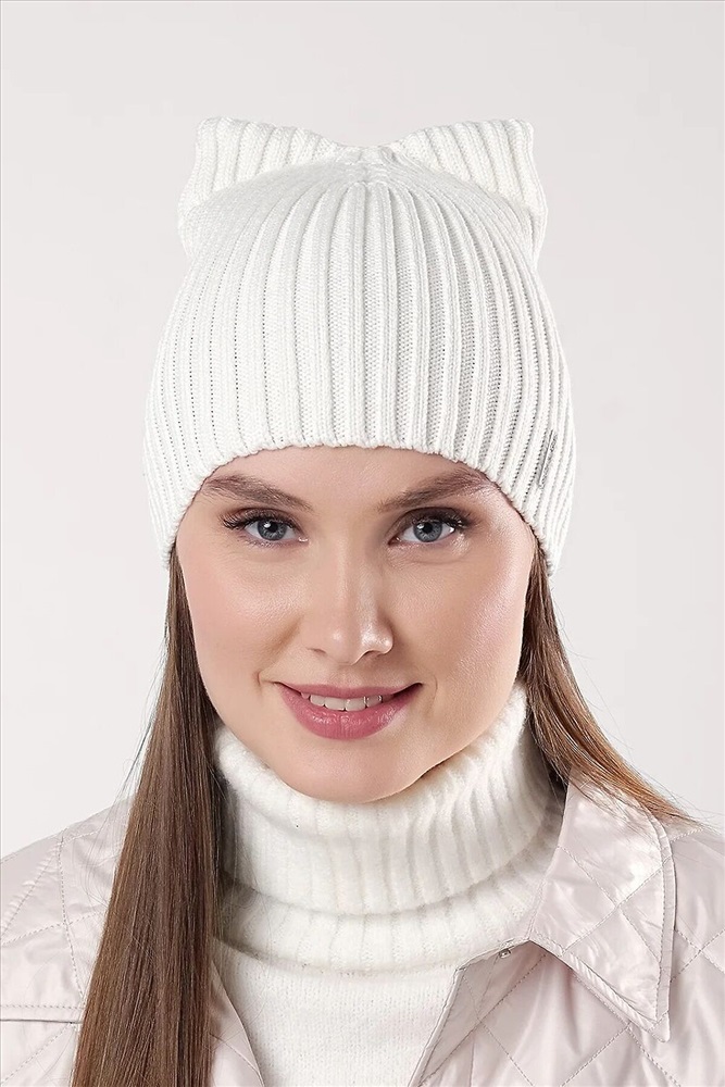 Шапка женская из хлопковой пряжи, без отворота, без утеплителя, декорирована стильной нашивкой. Идеально подойдёт для весенне - осеннего периода.