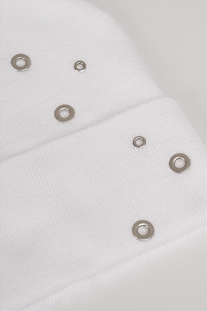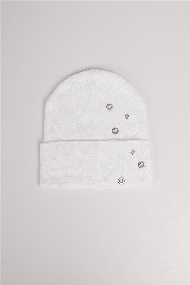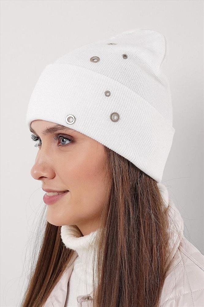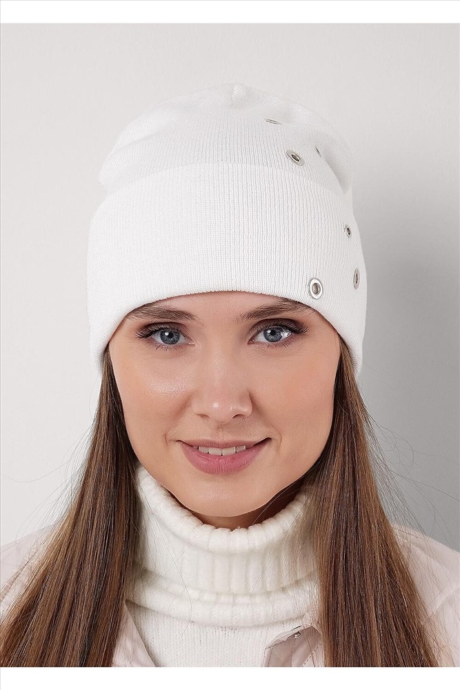 Шапка женская двойная из хлопковой пряжи, с отворотом, без утеплителя, декорирована люверсами. Идеально подойдёт для весенне - осеннего периода.