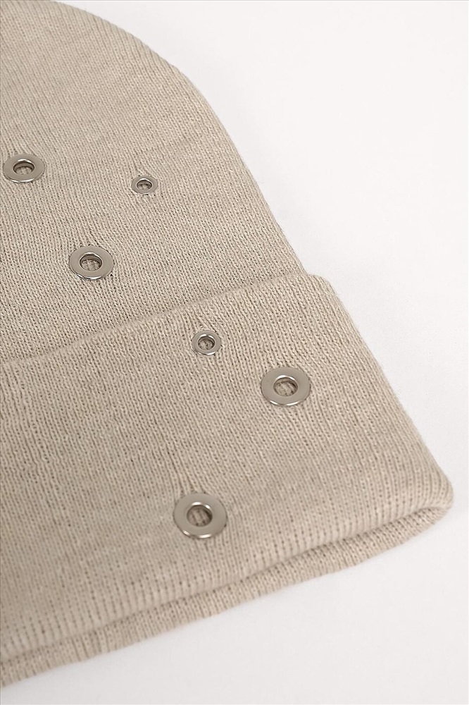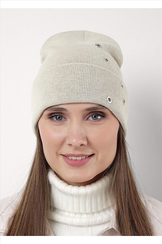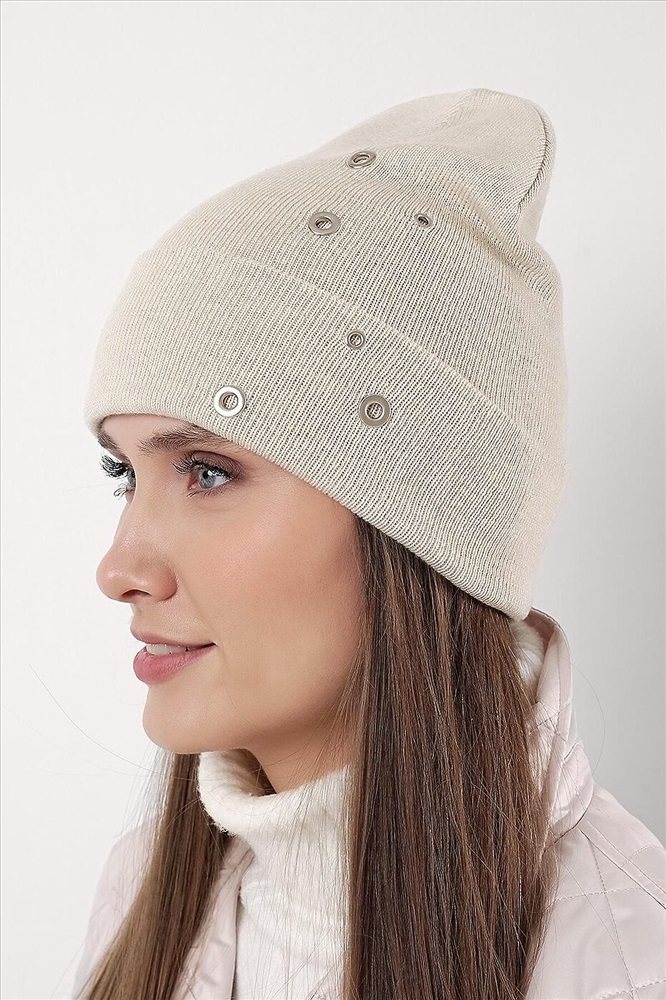 Шапка женская двойная из хлопковой пряжи, с отворотом, без утеплителя, декорирована люверсами. Идеально подойдёт для весенне - осеннего периода.