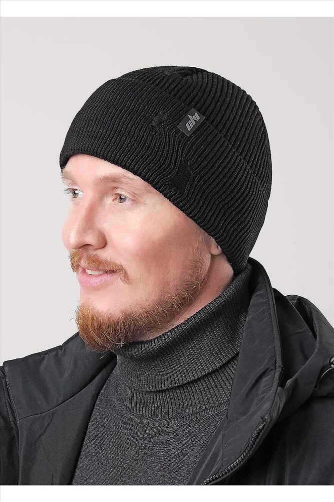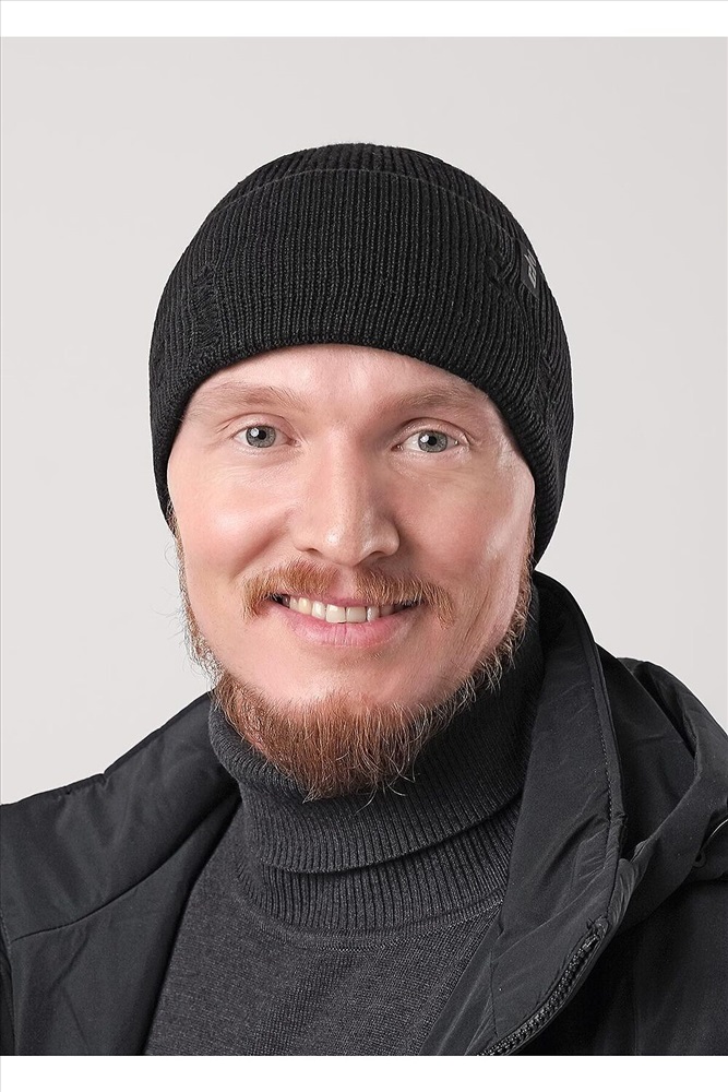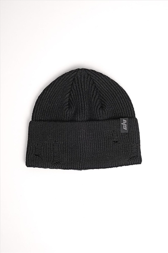 Мужская "рваная" шапка в стиле кежуал связана ластиком, с отворотом, без подклада, декорирована стильной нашивкой. Подойдёт для осенне- весеннего периода.