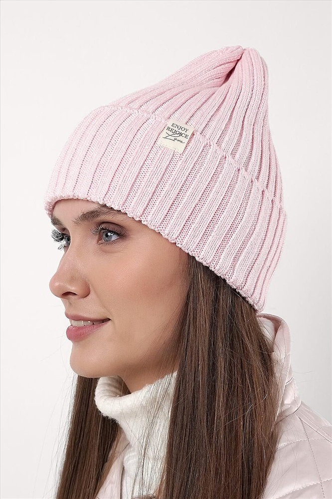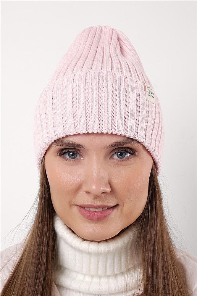 Женская шапка с отворотом, без подклада, декорирована нашивкой логотип. Идеально подойдёт для весенне - осеннего периода.