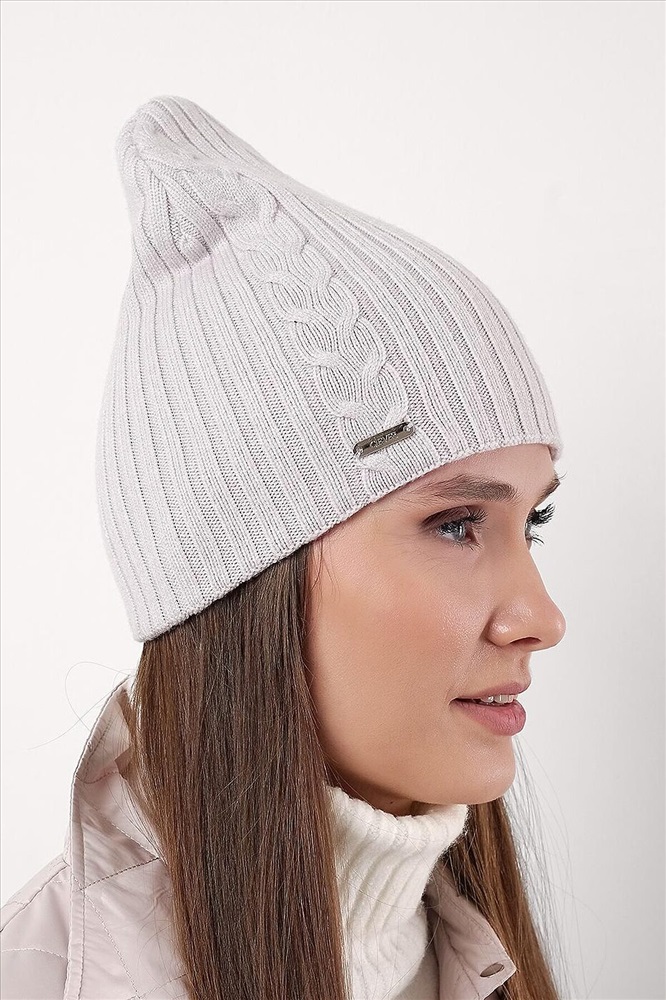 Шапка женская двойная, декорирована узором "косы", без отворота, без подклада, хорошо сохраняет тепло. Отличный выбор для прохладной осени и ранней весны.