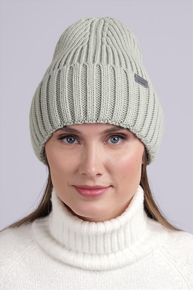 Шапка женская с отворотом, декорирована нашивкой логотип в височной зоне. Подойдёт для холодной осени- тёплой зимы.