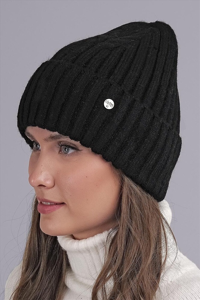 Шапка женская с отворотом, декорирована стильной имиджевой нашивкой. Утепление флисом по всей голове. Отлично подойдёт для холодной зимы.