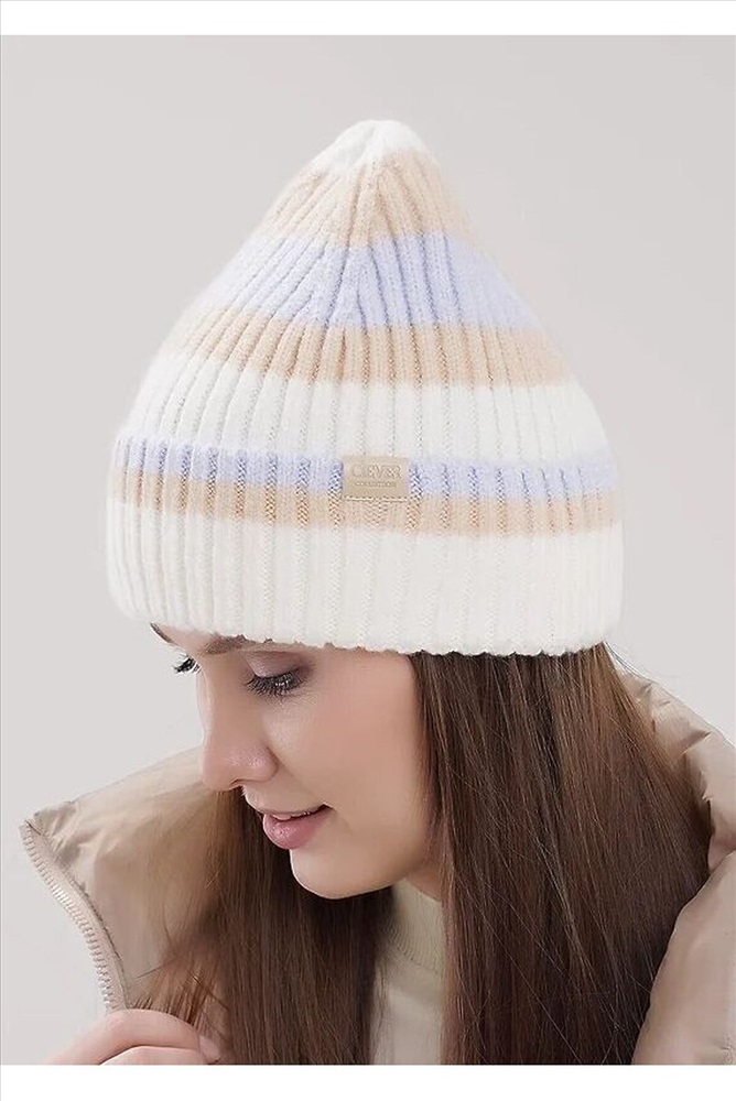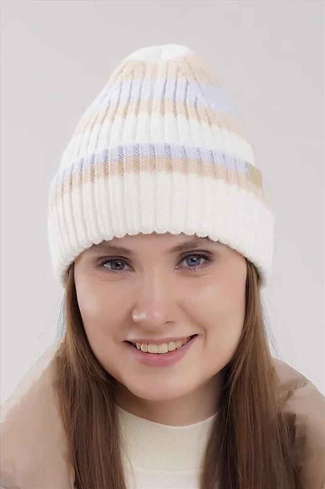 Женская шапка однослойная с отворотом, без подклада. Выполнена из высококачественной пряжи, декорирована стильной нашивкой. Станет не только отличной защитой от холода, но и модным аксессуаром.