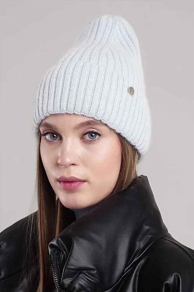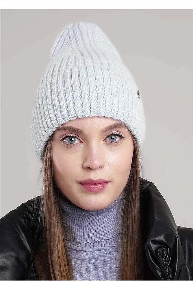 Шапка женская однослойная с отворотом, без подкладки, декорирована стильной нашивкой. Выполнена из мягкой пряжи с добавлением ангоры, благодаря чему хорошо сохраняет тепло. Отличный выбор для холодной зимы.