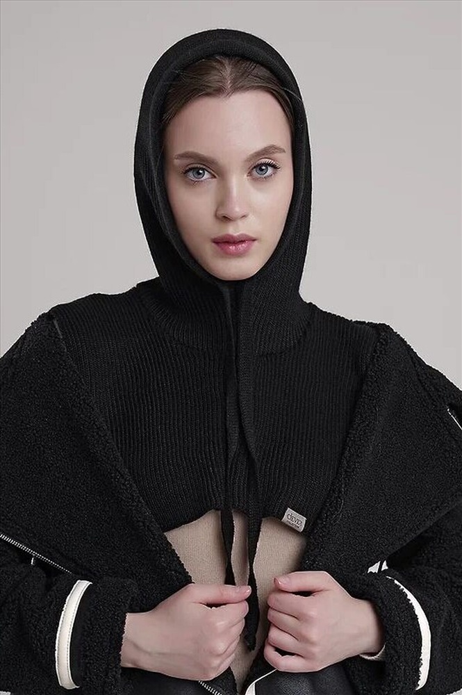 Женский однослойный капюшон на завязках. Приятен на ощупь и совсем не колется. Капор может заменить сразу и шапку, и шарф, надежно защитив от холода и ветра в любую непогоду.