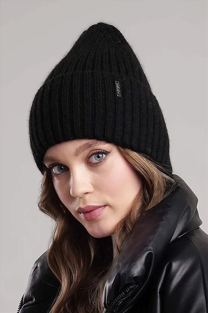 Женская шапка с отворотом выполнена из высококачественной пряжи с добавлением ангоры, декорирована стильной нашивкой. Утепление флисом по всей голове. Станет не только отличной защитой от холода, но и модным аксессуаром.