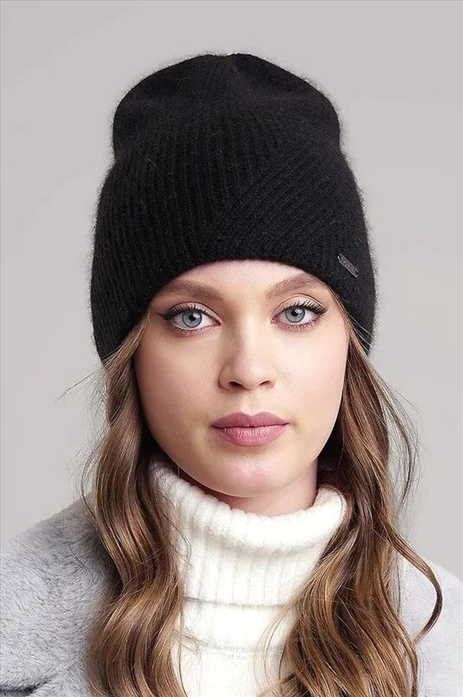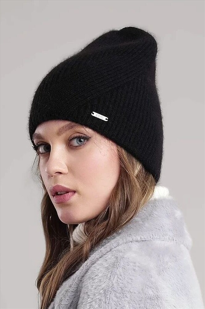 Женская двойная шапка без отворота выполнена из высококачественной пряжи с добавлением ангоры, декорирована стильной нашивкой, без подклада.Теплая, мягкая шапка послужит не только отличной защитой от холода, но и модным аксессуаром.