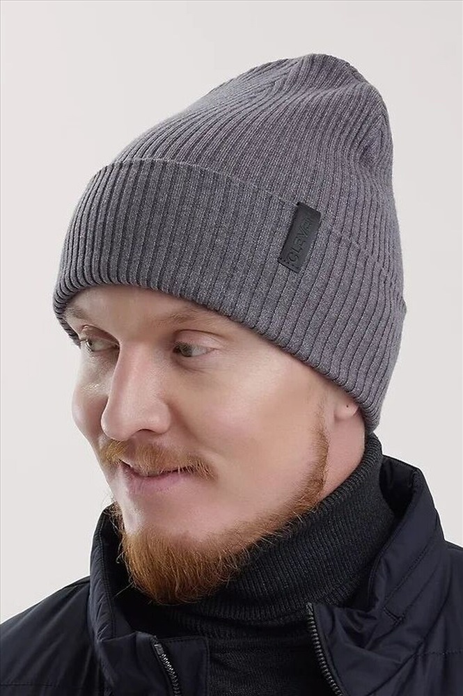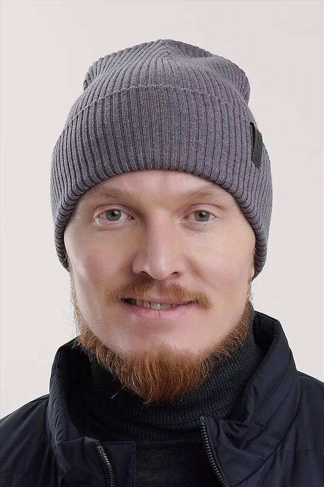 Стильная молодежная двойная шапка с отворотом, декорирована имиджевой нашивкой логотип. Подходит для холодной осени, тёплой зимы.