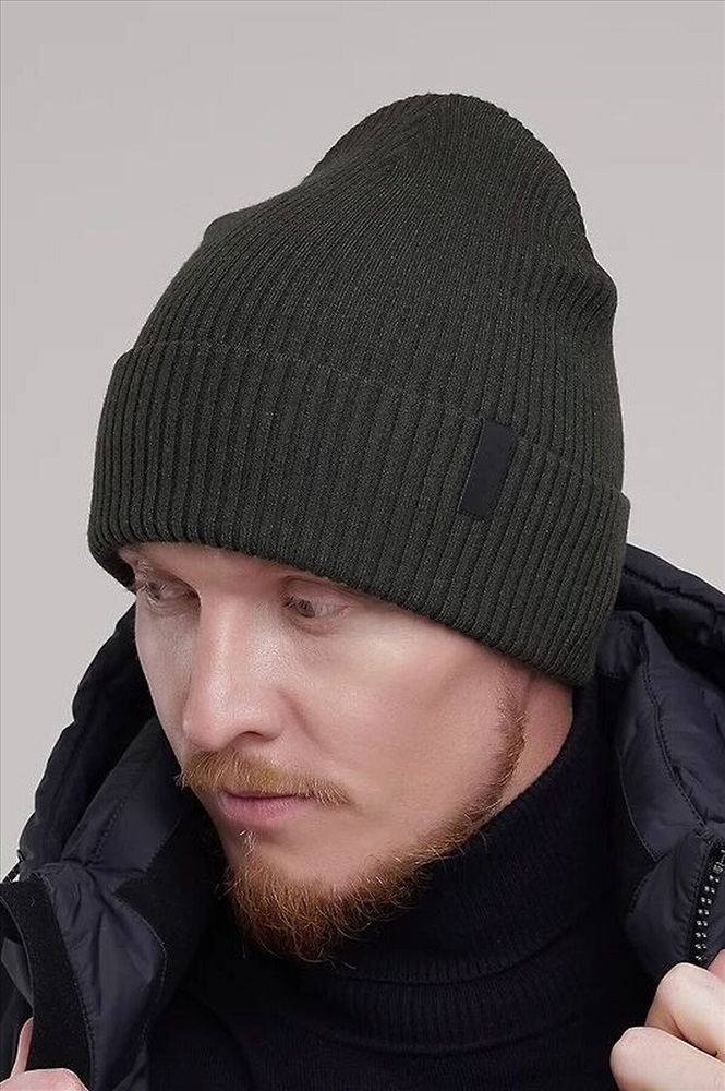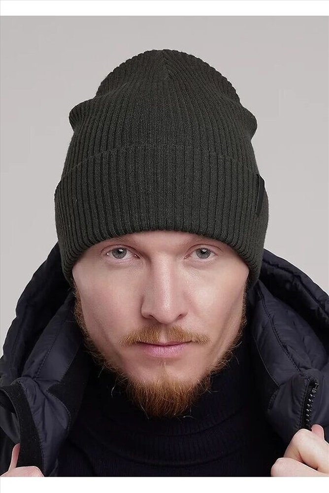 Стильная молодежная двойная шапка с отворотом, декорирована имиджевой нашивкой логотип. Подходит для холодной осени, тёплой зимы.
