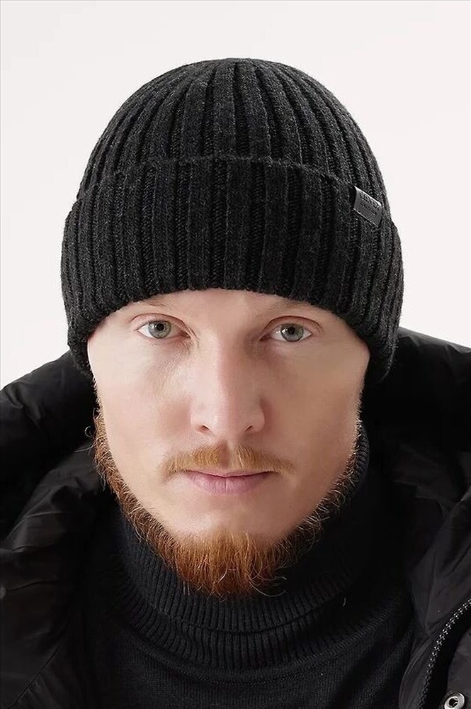 Страна производства: Россия Мужская шапка на флисе с отворотом, отвязанная ластичным переплетением