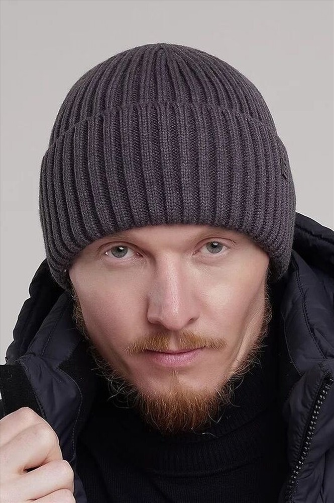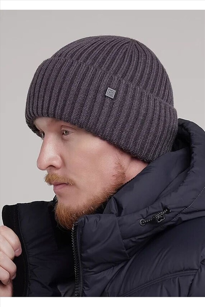Шапка мужская с отворотом, с подкладом из флиса. Выполнена из высококачественной пряжи с добавление шерсти, декорирована стильной нашивкой. Станет не только отличной защитой от холода, но и модным аксессуаром.