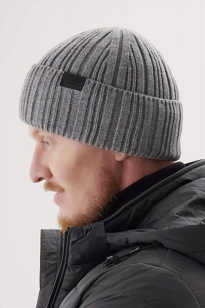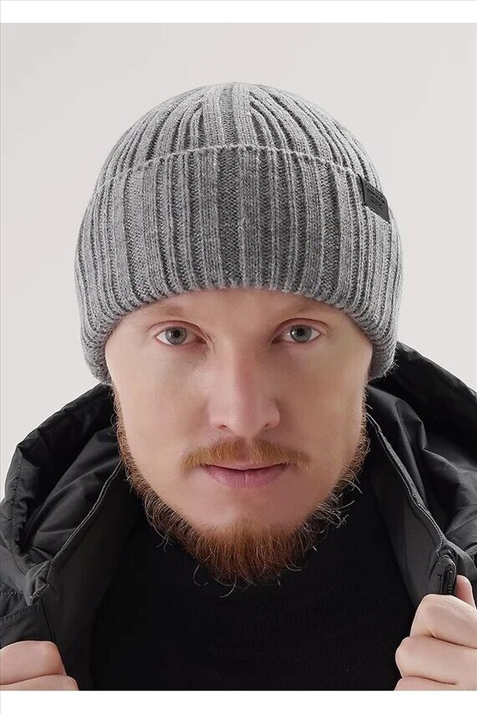 Шапка мужская с отворотом, с подкладом из флиса. Выполнена из высококачественной пряжи с добавлением шерсти, декорирована стильной нашивкой. Станет не только отличной защитой от холода, но и модным аксессуаром.