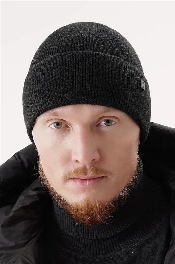 Шапка мужская с отворотом, с подкладом из флиса. Выполнена из высококачественной пряжи, декорирована стильной нашивкой. Станет не только отличной защитой от холода, но и модным аксессуаром.