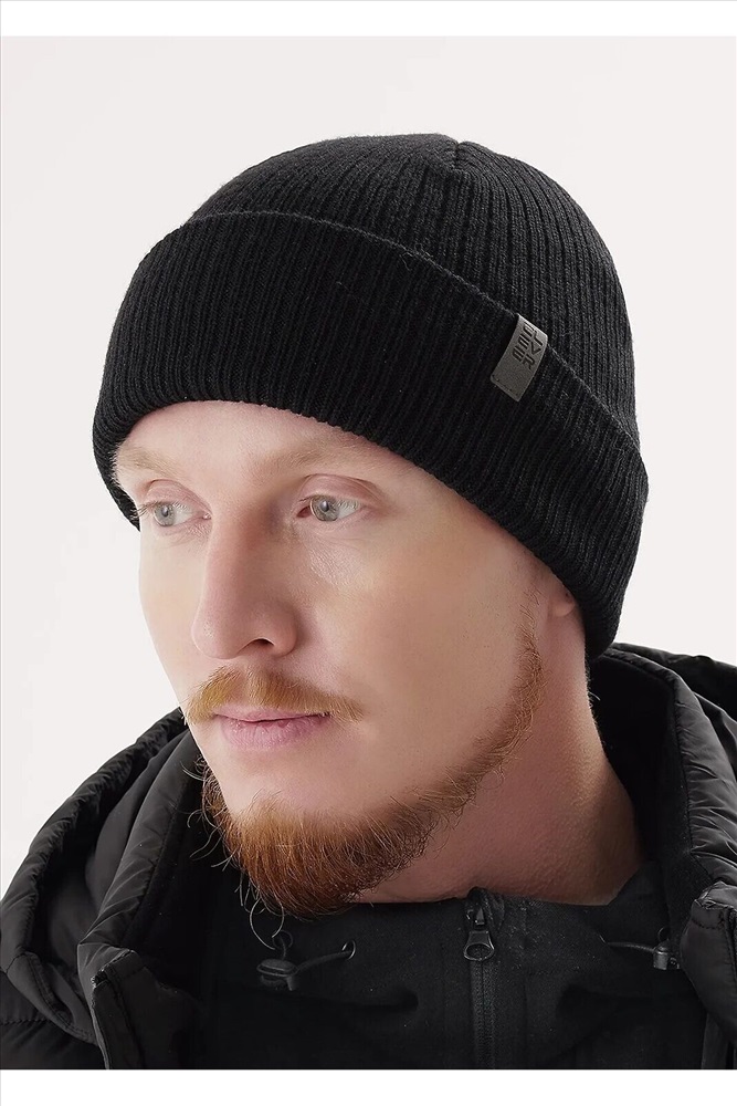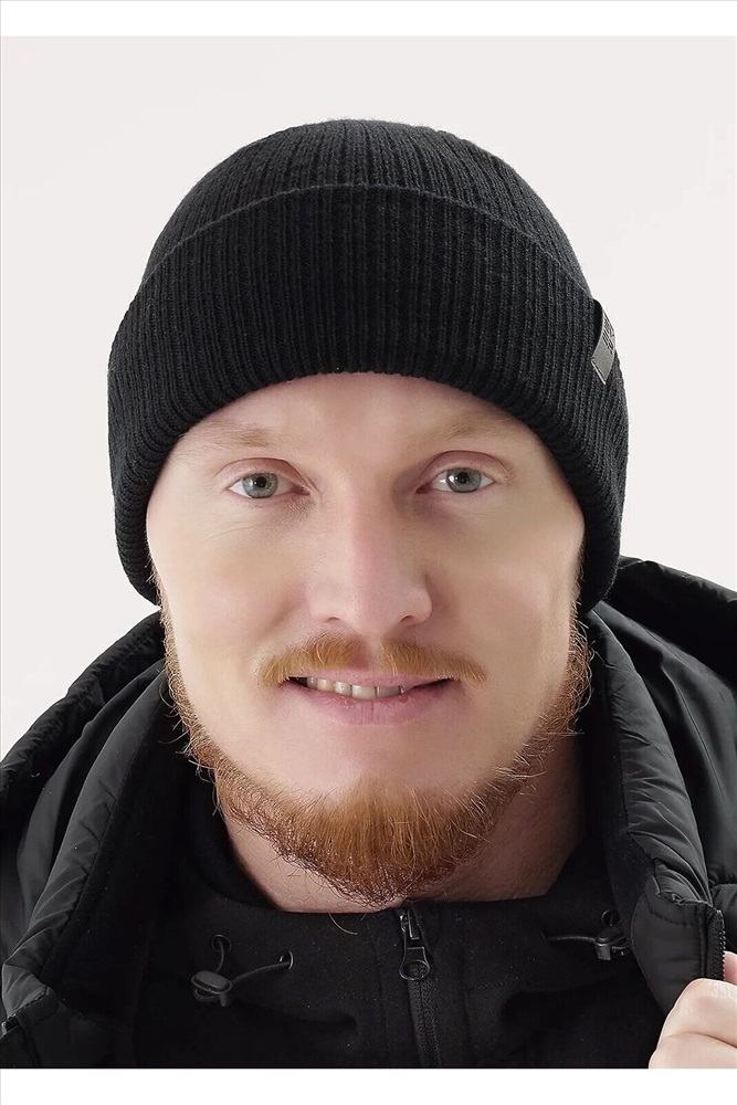 Шапка двойная мужская, декорирована стильной нашивкой логотип. У данной модели 2 варианта посадки: с отворотом и без отворота. Идеально для холодной осени-тёплой зимы.
