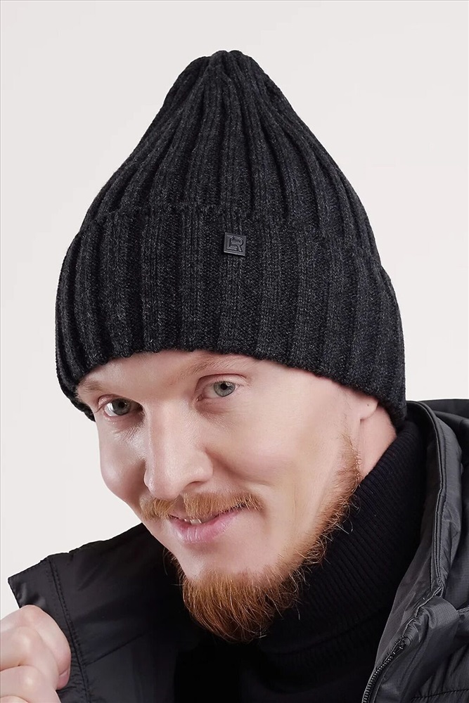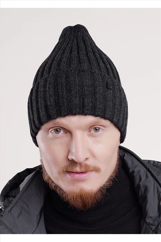 Мужская шапка с отворотом, без подклада. Выполнена из высококачественной пряжи с добавлением шерсти, декорирована стильной нашивкой. Станет не только отличной защитой от холода, но и модным аксессуаром.