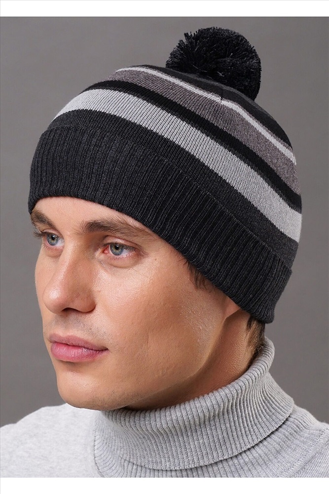 ID товара: 219416 Состав: 50% Хлопок 50% Акрил Сезон: Демисезон Рисунок: Полоска Декоративные элементы: Помпоны Основная ткань: Хлопок Страна бренда: Россия Страна производства: Россия Мужская шапка с ластичным отворотом и мулинированнымми полосками в основе. Подклад - флис. Комментарии к товару