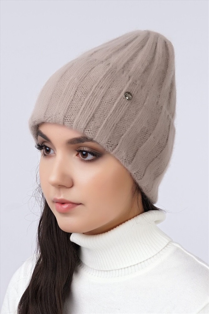 Женская шапка с отворотом, связаная ластичным переплетением. Дополнительное утепление - флис