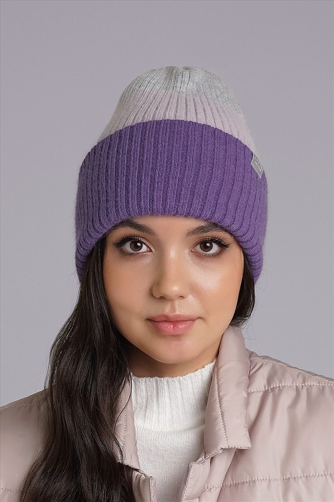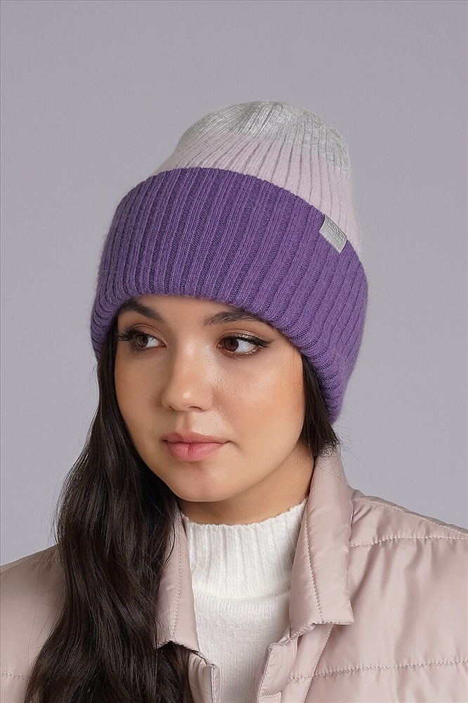 Женская двойная шапка с отворотом , декорирована нашивкой логотип в височной зоне. Подойдёт для холодной зимы.