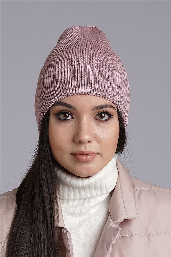 Шапка женская с отворотом, декорирована стильной нашивкой в височной зоне. Подойдёт для осенне- весеннего сезона.