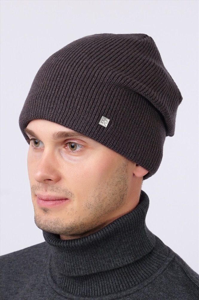 Мужская шапка- колпак, выполнена рельефным ластичным переплетением, декорирована кожаной нашивкой логотип, и в затылочной части защипом с кожаной застежкой- "клевант". Утепление- флис по всей голове. Идеально подойдёт для холодной осени- зимы.