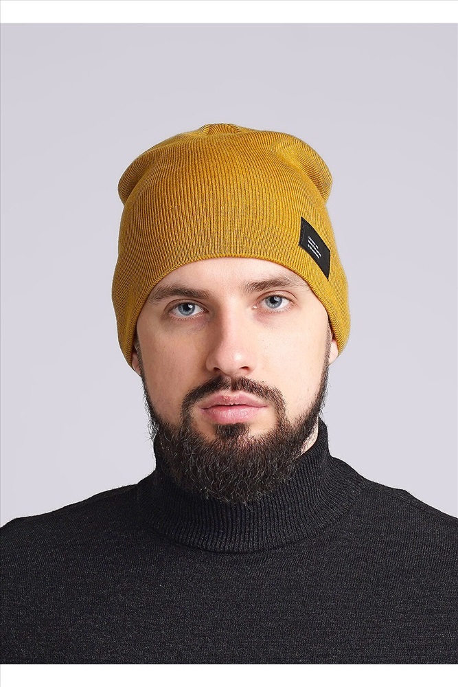 Шапка мужская двойная, декорирована нашивкой, идеально подойдёт для холодной осени.