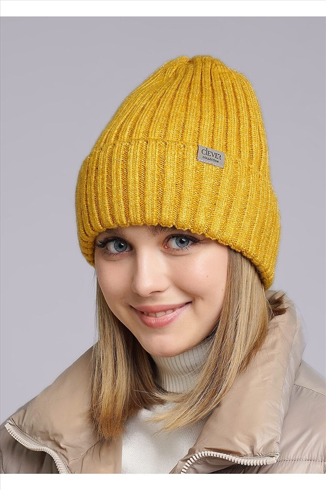 Стильная женская шапка бини с отворотом, выполнена из высококачественной пряжи, декорирована имиджевой логотипом- нашивкой. Дополнительное утепление флисом по всей голове. Идеально подойдёт для зимы.