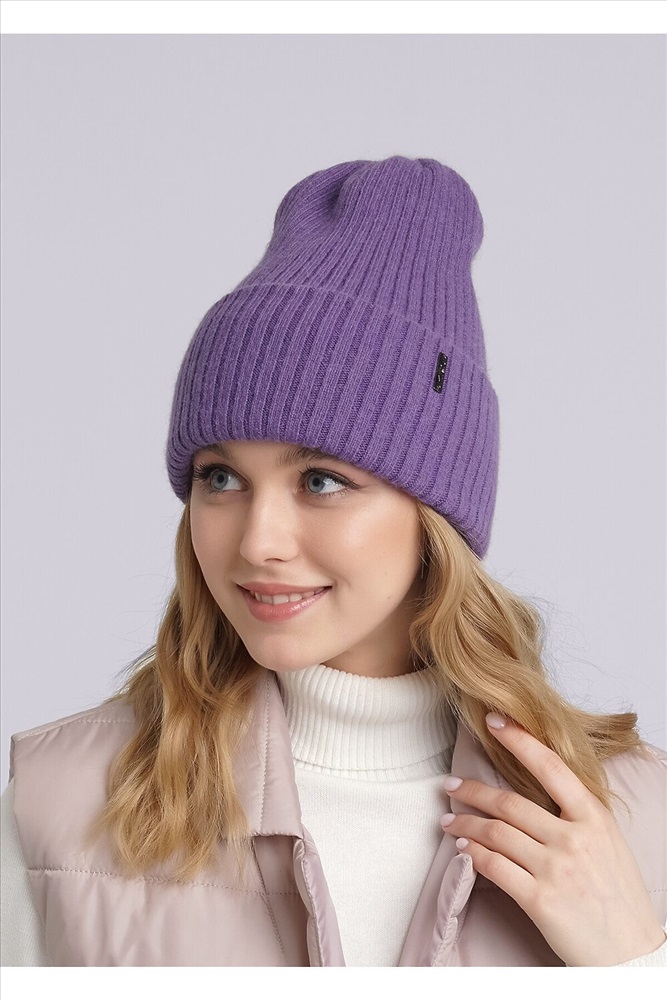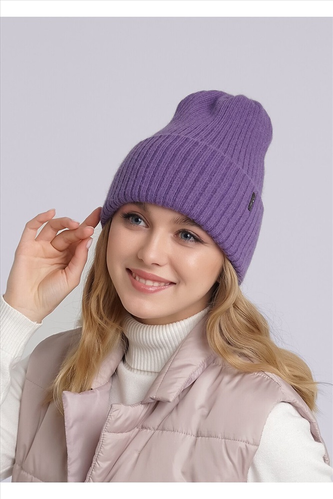 Женская двойная шапка с отворотом, декорирована стильной имиджевой нашивкой. Идеальна для зимы.