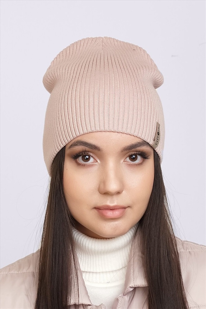 Базовая двойная шапка без отворота, выполнена ластичным переплетением. Декорирована стильной нашивкой. Идальна для холодной осени, тёплой зимы.