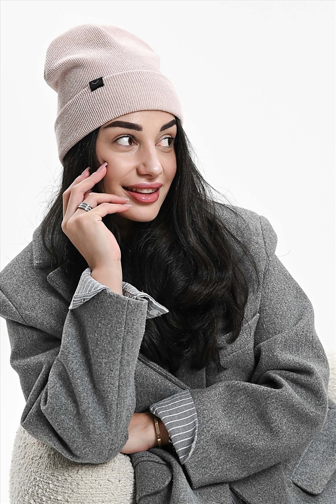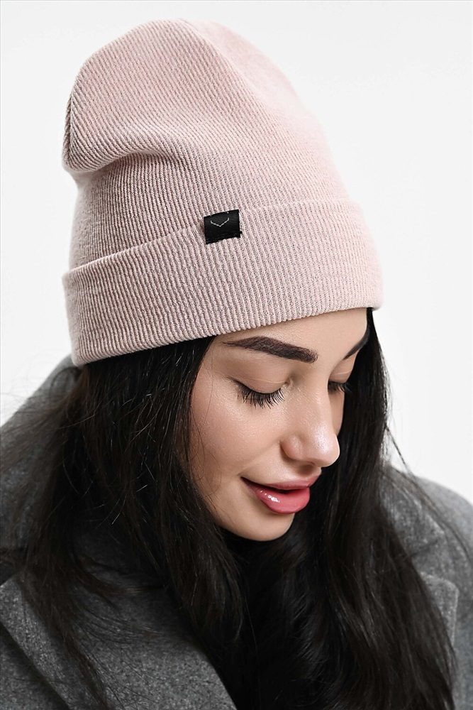 Стиль: повседневный Шапка теплая в рубчик с нашивкой, двусторонняя. Длина изделия в развернутом виде - 31 см.