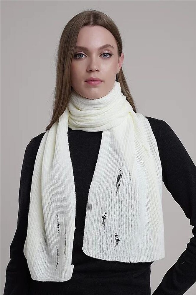 Шарф женский однослойный, декорирован спущенными петлями - "рваный" эффект. Отличный выбор для повседневного носки, сочетающий в себе модность, практичность и комфорт.