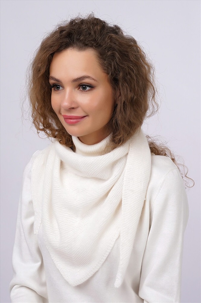 Женская шарф-косынка выполнена из пряжи с содержанием ангоры. Размеры косынки 120 х 55 см.