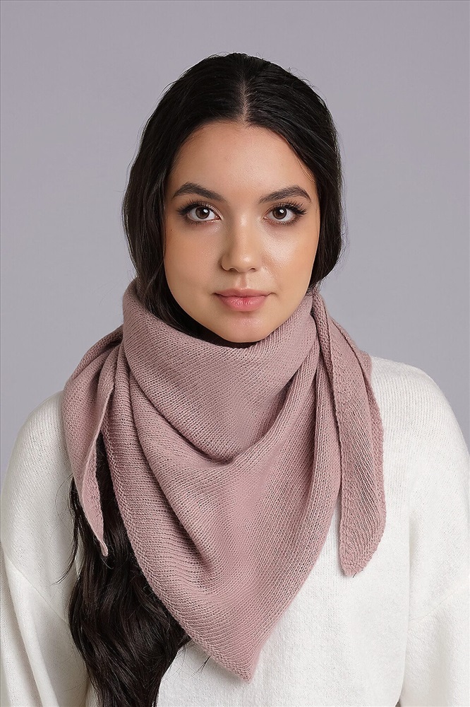Женская шарф-косынка выполнена из пряжи с содержанием ангоры. Размеры косынки 120 х 55 см.