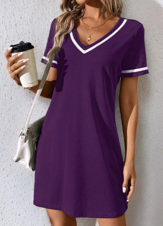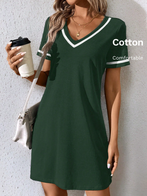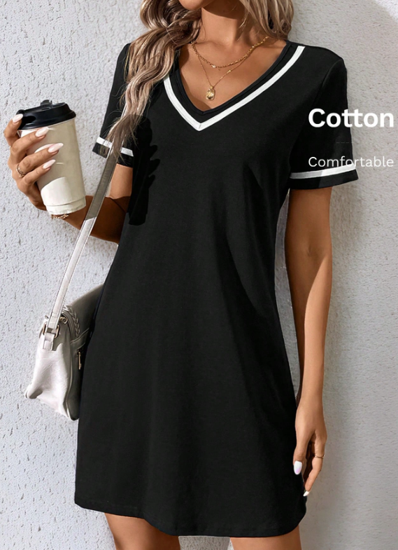 SHEIN LUNE Fashionable Casual V-Neck Color Block Knit Dress With Weave Belt, Black,Summer Dresses For Women
