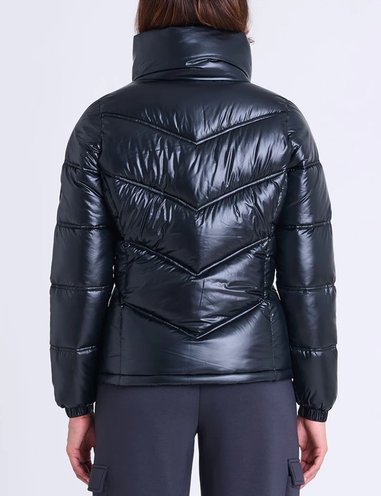 SHINY CHEVRON QUILTED PUFFER JACKET