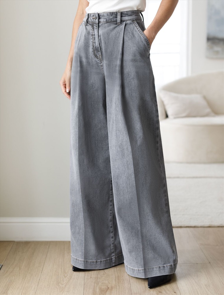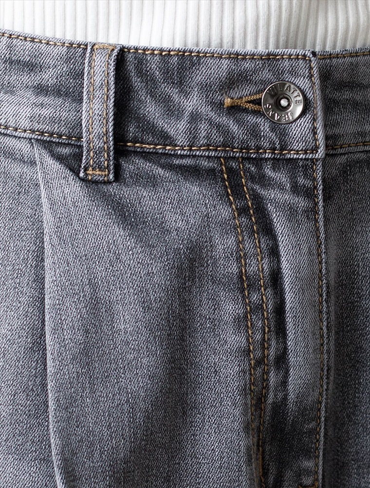 Свободные широкие джинсы серого цвета с защипами из эластичного денима плотностью 10,3 OZ созданы для тех, кто ценит комфорт и стиль в повседневной жизни. При производстве джинсов применена технология «вареные швы», которая основана на локальном вымывании красителя из плотных участков ткани — сгибов и швов — за счет механического воздействия во время промышленной стирки. Стоун вошинг - энзимная стирка с камнями. Камни воздействуют на ткань, выбивая краску на швах, создавая контрастные мраморные потертости и мягкость. Модель отличается свободным кроем, который обеспечивает удобство движений и гармонично подчеркивает современный силуэт. Защипы добавляют изюминку и делают образ более интересным, а также визуально вытягивают силуэт. Благодаря использованию эластана материал сохраняет свою форму даже после длительной носки и многочисленных стирок.
