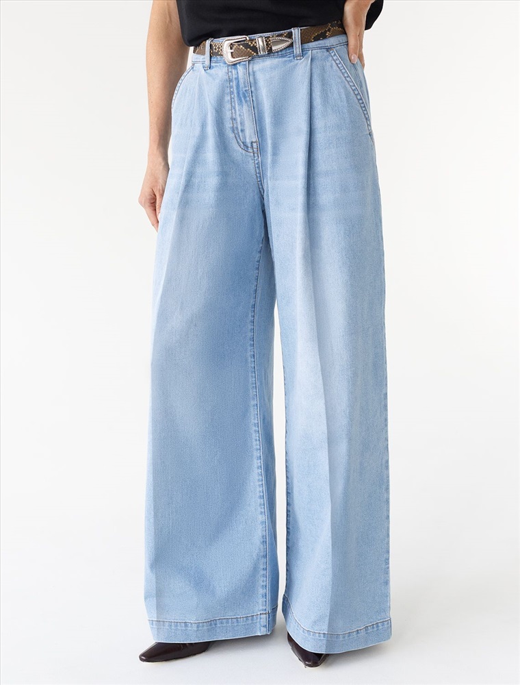 Плотность: 10,3 OZ Свободные широкие джинсы голубого цвета с защипами из эластичного денима плотностью 10,3 OZ созданы для тех, кто ценит комфорт и стиль в повседневной жизни. При производстве джинсов применена технология «вареные швы», которая основана на локальном вымывании красителя из плотных участков ткани — сгибов и швов — за счет механического воздействия во время промышленной стирки. Стоун вошинг - энзимная стирка с камнями. Камни воздействуют на ткань, выбивая краску на швах, создавая контрастные мраморные потертости и мягкость. Модель отличается свободным кроем, который обеспечивает удобство движений и гармонично подчеркивает современный силуэт. Защипы добавляют изюминку и делают образ более интересным, а также визуально вытягивают силуэт. Благодаря использованию эластана материал сохраняет свою форму даже после длительной носки и многочисленных стирок. Джинсы отлично подходят для создания стильных городских образов, легко сочетаются с узкими и укороченными верхами. Универсальность модели делает ее идеальным выбором для прогулок по городу, встреч с друзьями или поездок на природу. Качественный материал приятен к телу и не вызывает дискомфорта даже при длительном ношении. Широкий крой хорошо смотрится на разных типах фигуры и помогает создать расслабленный модный лук без лишних усилий. Комментарии к товару
