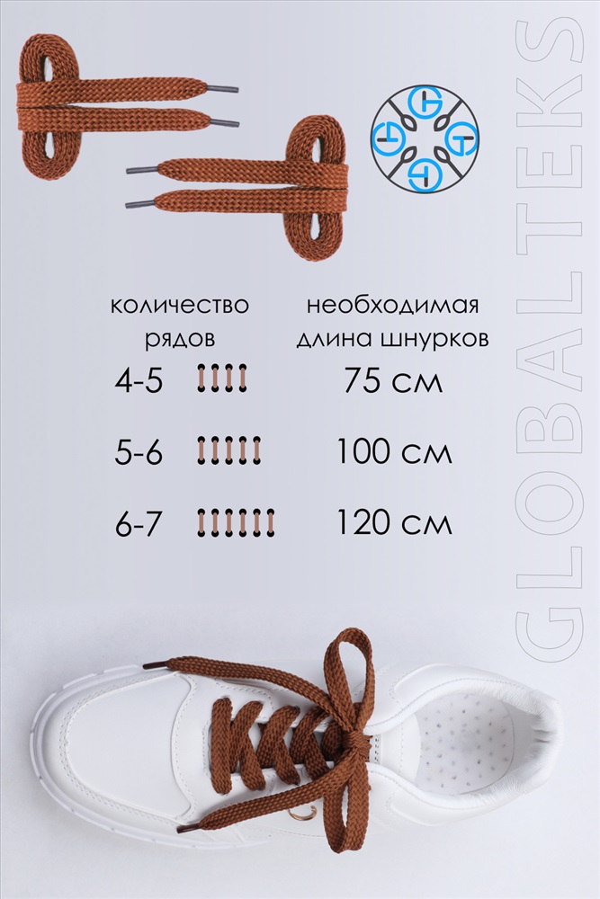 Состав: 80% полиэстер, 20% хлопок Модель: Шнурки для обуви №GL47-1 Тип товара: шнурки Материал: полиэстер | полиэстер Бренд: Глобал Текс Рисунок: однотонные Сезонность: лето | осень | весна | зима Шнурки для обуви это универсальный аксессуар, который необходим в каждому. Длина - 100 см, ширина 1 см. Отлично подойдут на кроссовки, кеды, ботинки, полуботинки, футбольные бутсы можно завязать на 5-6 пар отверстий. Наши обувные шнурки не развязываются при ходьбе и беге. Эглеты (наконечники) пластиковые. Таблица размеров и веса