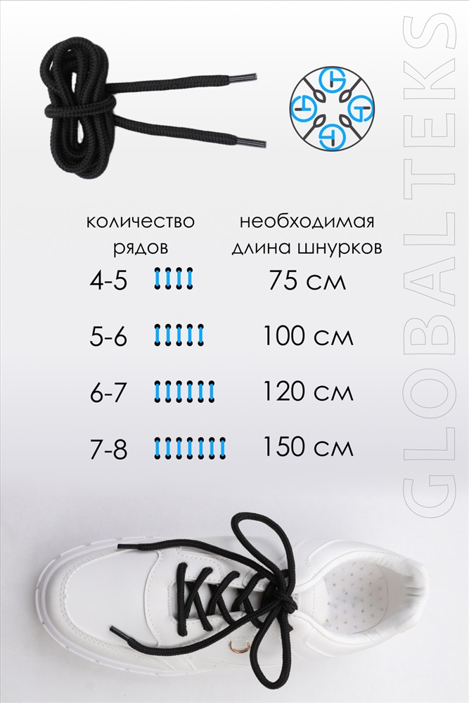 Сезонность: лето | осень | весна | зима Шнурки белого и черного цвета это универсальный аксессуар, который необходим в каждому. Вид плетения в ассортименте.