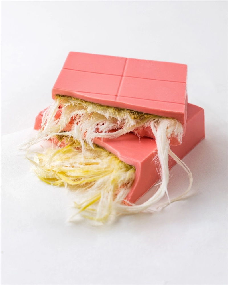 Составшоколад белый (сахар, масло какао, сухое обезжиренное молоко, сухое цельное молоко, сливки сухие, эмульгатор (лецитин соевый), соль,порошок из стручков ванили, пищевой краситель E129) Начинка (фисташка измельченная, консервант сорбат калия, эмульгатор соевый лицетин) пишмание – турецкий пашмак халва ( вода подготовленная, пшеничная мука высшего сорта, сахар, растительное масло(пальмовое),регулятор кислотности – лимонная кислота, порошок из стручков ванили) Пищевая ценностьНа 100г продуктаБелки –12,2 г, жиры – 25,4 г, углеводы – 53,1 г