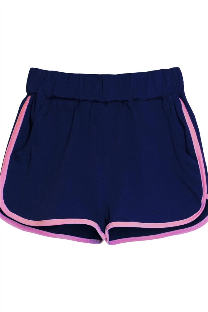 Шорты трапецевидного силуэта отлично подойдут для занятий спортом, прогулок и повседневных образов. Удобная, комфортная и яркая одежда - то, что нужно любой девочке. Пояс отрезной в цвет изделия, выполнен основного полотна. По поясу шорт вставлен плоский утягивающий шнурок. На передней половинке шорт выполнены карманы с отрезным бочком. Боковой шов и низ изделия окантован полотном контрастного цвета.