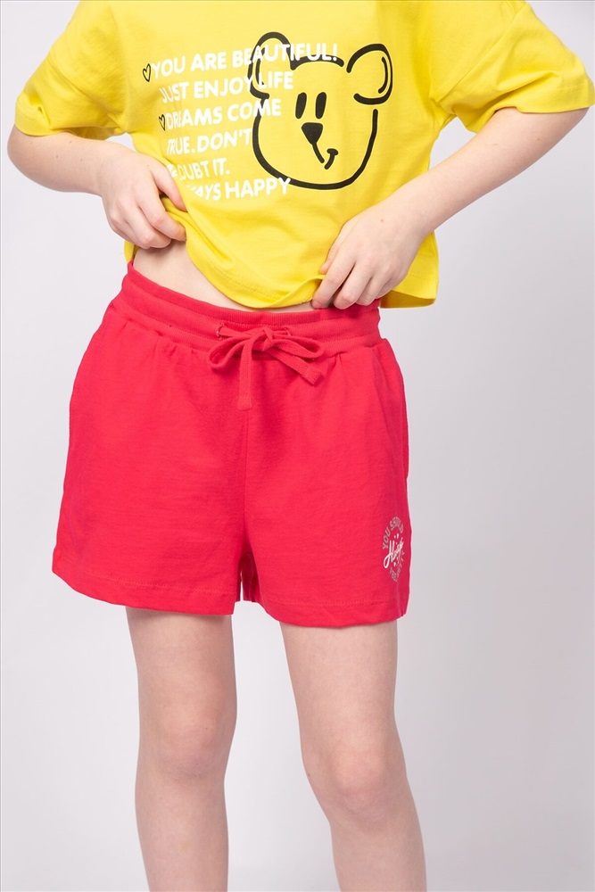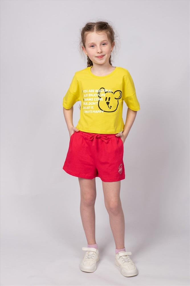 Страна производства: Россия Модные и удобные трикотажные шортики - отличный выбор для девочек на летний сезон и для занятий спортом. По поясу шорт вставлен плоский утягивающий шнурок в цвет шорт, низ шнурка подвернут и застрочен. На левой передней половинке шорт принт шелкография с глиттером. Надпись переводится как Ты всегда должна чувствовать себя красивой. Эти шортики для девочек идеально подходят для повседневных летних прогулок.