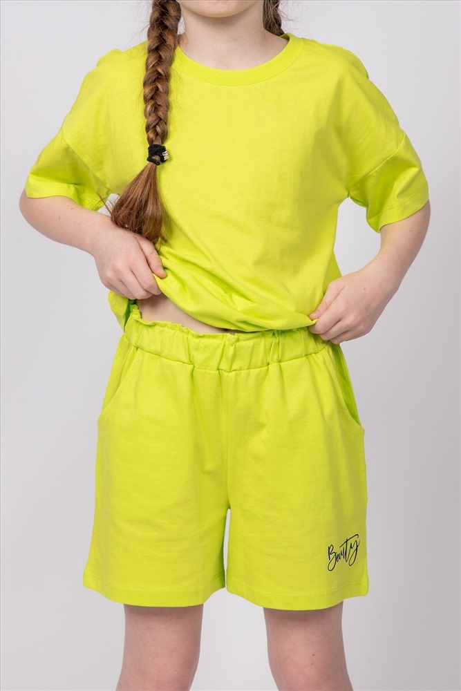 Страна производства: Россия Модные и удобные трикотажные шортики - отличный выбор для девочек на летний сезон и для занятий спортом. В пояс вставлена эластична тесьма. На левой передней половинке шорт принт шелкография. Надпись переводится как Красота.
