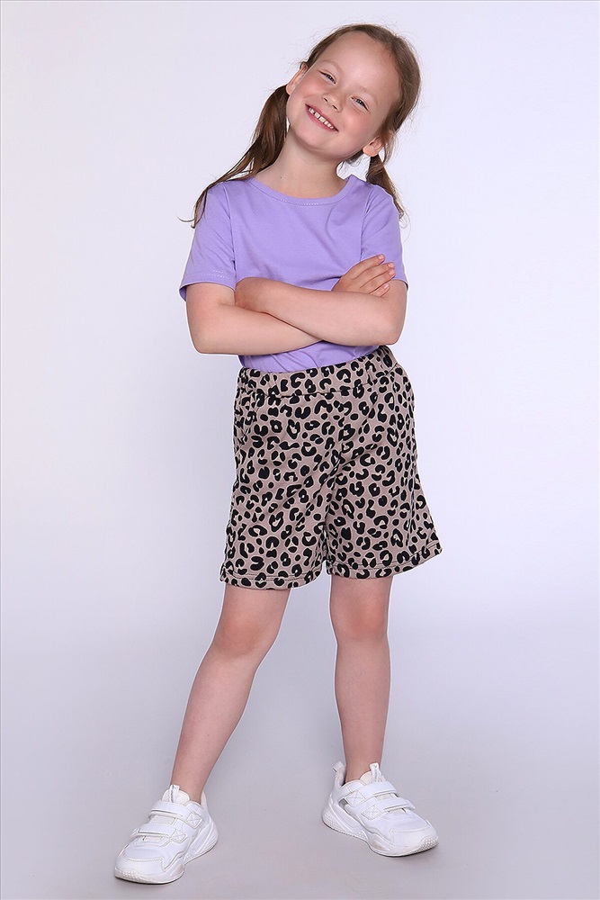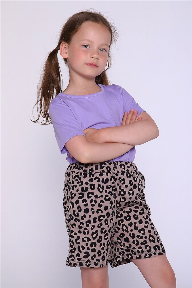ID товара: 900303 Состав: 100% Хлопок Сезон: Весна/Лето Длина: Средняя Фасон: Прямой Посадка: Высокая Рисунок: леопардовый Тип карманов: В боковом шве Основная ткань: Хлопок Стиль: Повседневный Вид ткани: Кулирка Страна бренда: Россия Страна производства: Россия Прикольные шорты на девочку, прямого кроя с карманами. Комментарии к товару