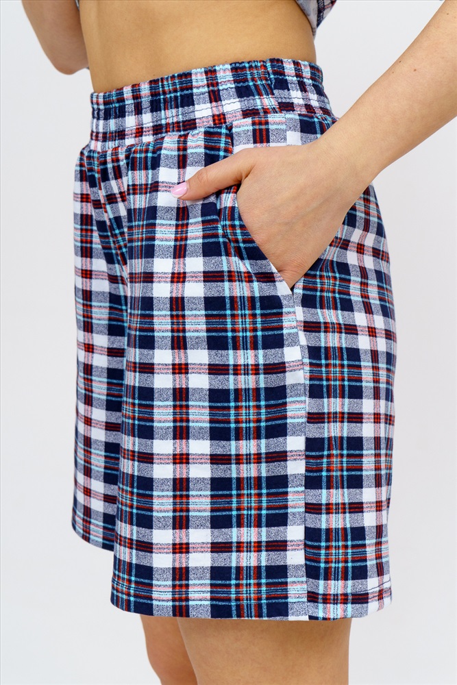 Состав: 100% хлопок Модель: Шорты 36760 Тип товара: шорты Материал: кулирка | кулирка Бренд: Натали Суслова Карман: боковые Назначение: для дома НДС: 22% Особенности: на резинке Отделка: с карманами Посадка: высокая посадка Рисунок: клетка Сезонность: лето | осень | весна | зима Силуэт: прямой | свободный Стиль: домашний Застежка: без застежки Модные женские шорты - бермуды с завышенной линией талии выполнены из 100% хлопчатобумажного материала. Одежда из ткани с дизайном клетка - это тренд сезона. Пояс шорт выполнен на специализированной поясной машине, что добавляет изделию большую износостойкость и эстетический внешний вид. По бокам, для удобства, расположены вместительные карманы. Изделие имеет много положительных качеств: нежность и лёгкость, высокая прочность, воздухопроницаемость. Легкие шорты с высокой посадкой создадут модный образ для любой девушки. С шортами из клетки Вы создадите себе, как спортивный или повседневный образ на выход, так и универсальный вариант для дома и сна. У нас Вы также можете приобрести рубашку - модель 36759 в едином стиле с шортами и создать свой неповторимый образ! Таблица размеров и веса