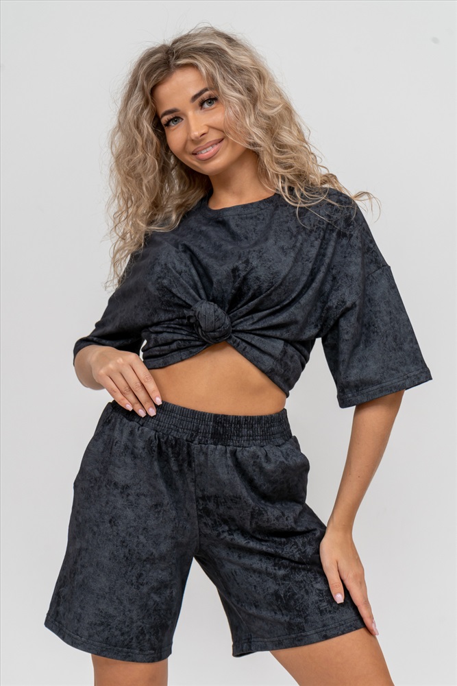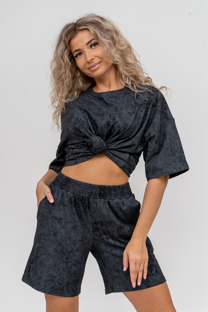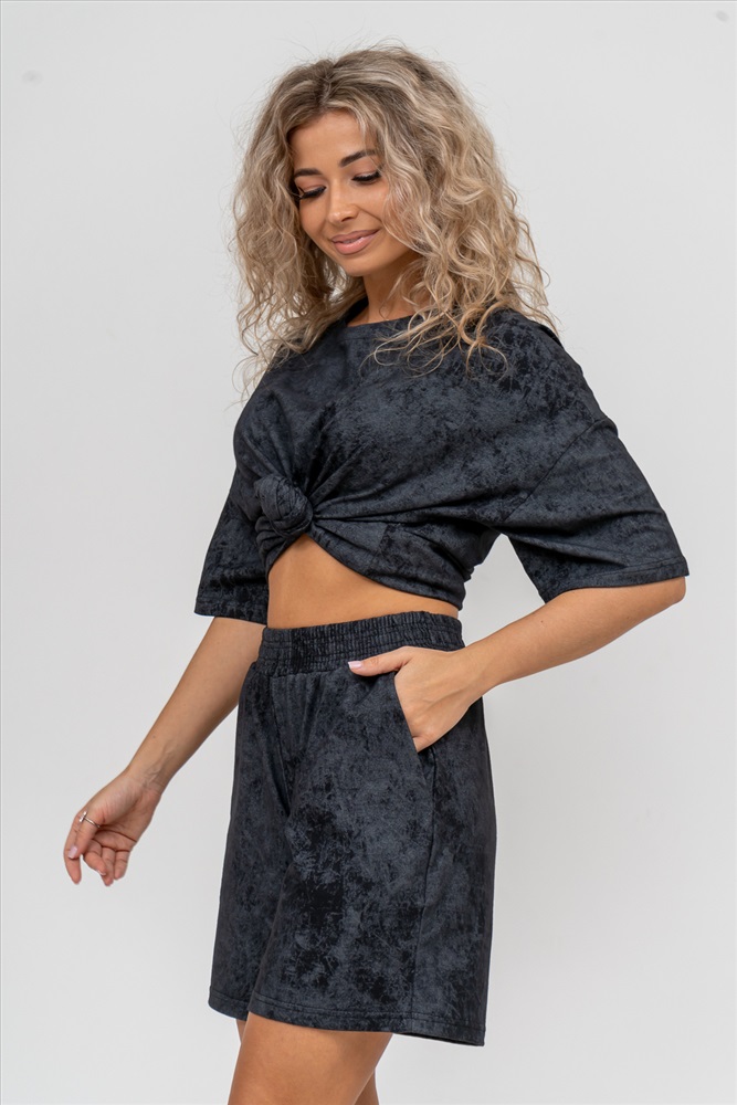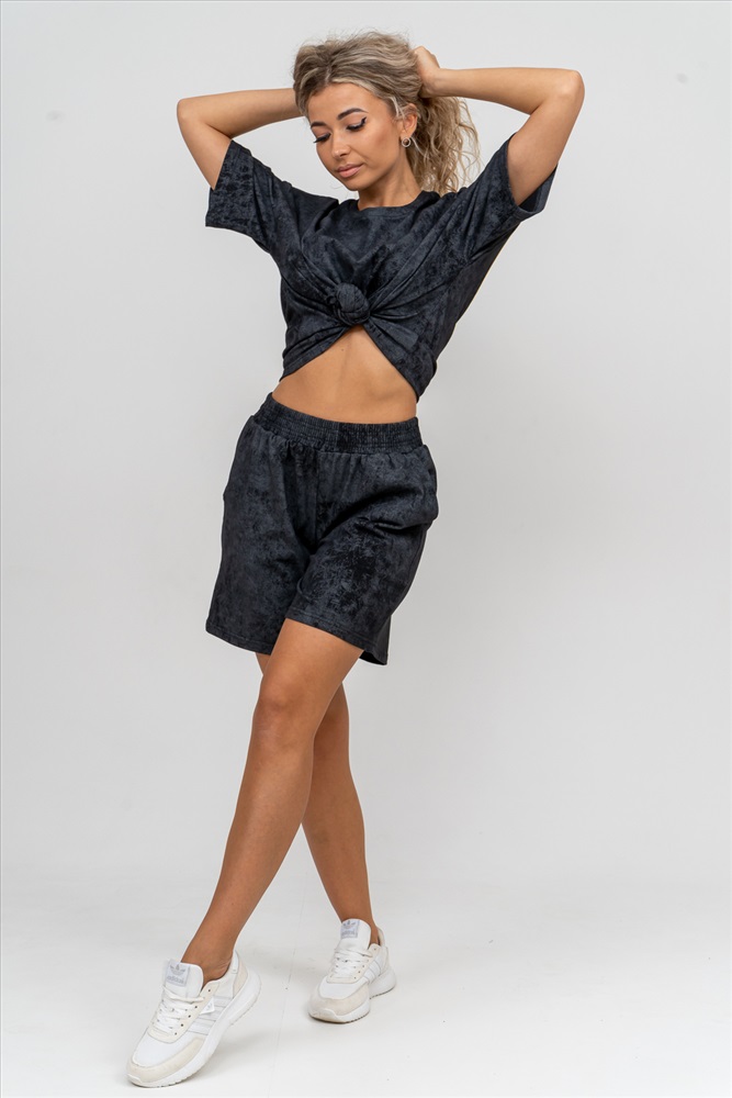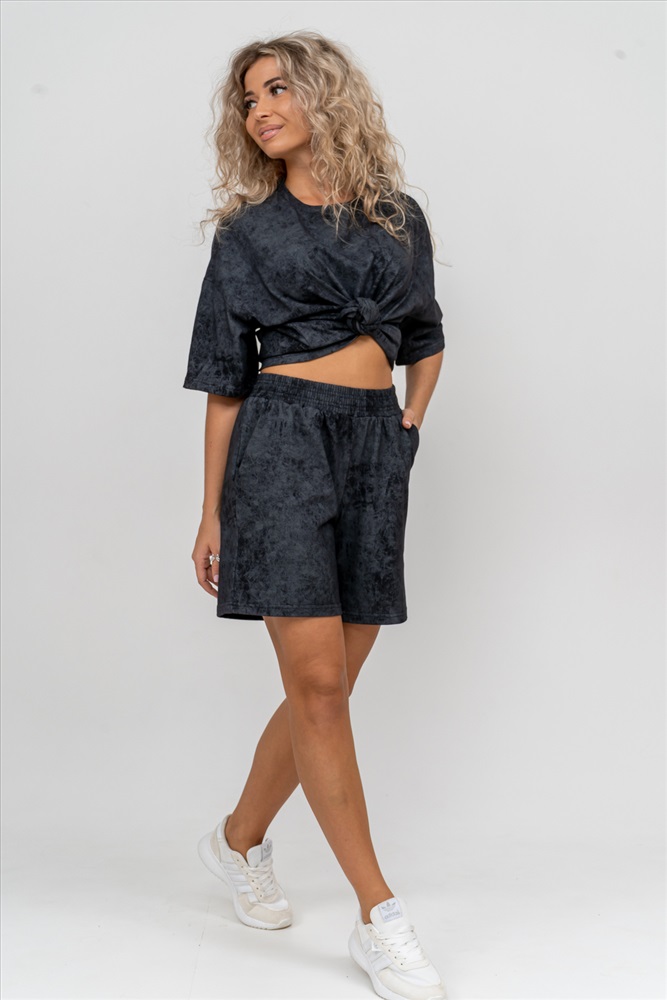 Застежка: без застежки Модные женские шорты - бермуды с завышенной линией талии выполнены из 100% хлопчатобумажного материала - варёнка. Вареная ткань - особым образом обработанная ткань, что придает ей некий красивый, специфический цвет. Тактильна приятная с велюровым эффектом. Она прочна, устойчива к истиранию, умеренно тянется. Хорошо пропускает воздух, позволяет коже дышать. Зимой в ней тепло, а летом прохладно. Одежда из ткани с дизайном варёнка - это тренд сезона. Пояс шорт выполнен на специализированной поясной машине, что добавляет изделию большую износостойкость и эстетический внешний вид. По бокам, для удобства, расположены вместительные карманы. Изделие имеет много положительных качеств: нежность и лёгкость, высокая прочность, воздухопроницаемость. Легкие шорты с высокой посадкой создадут модный образ для любой девушки. С такими шортами Вы создадите себе, как спортивный или повседневный образ на выход, так и универсальный вариант для дома и сна. У нас Вы также можете приобрести футболку - модель 36834 в едином стиле с шортами и создать свой неповторимый образ!
