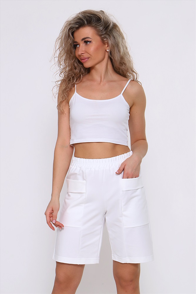 Состав: хлопок 75%, п\э 20%, лайкра 5% Модель: Шорты 78548 Тип товара: шорты Материал: футер с лайкрой 2-х нитка | футер с лайкрой 2-х нитка Бренд: Натали Суслова Карман: накладные НДС: 5% Особенности: на резинке Отделка: с карманами Рисунок: однотонные Сезонность: лето | осень | весна | зима Силуэт: прямой Стиль: повседневный Застежка: без застежки Стильные женские шорты, выполнены из футера 2-х нитка качество карде, ткань мягкая, эластичная, отлично пропускает воздух, не просвечивает. Изделие представлено в двух расцветках, молоко и новый актуальный цвет сезона малахит-минеральный. Универсальная модель шорт с оптимальной длинной, подойдет под любой образ и повод. Легко будет сочетаться как с футболками, топами, рубашками, так и с толстовками, жакетами. На передних половинках шорт, симметрично расположены накладные карманы с имитацией клапана. Карманы достаточно глубокие и не теряют форму при носке, продольные швы по переду, образуют эффект стрелки. Пояс на резинке с отстрочкой для вашего удобства и комфорта, резинка мягкая, широкая 4 см. На фото модель представлена в 46 размере. Таблица размеров и веса