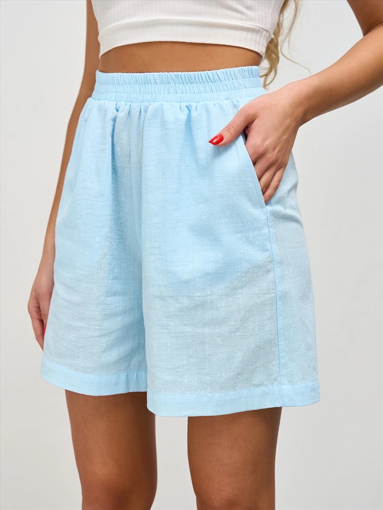 Шорты с притачным поясом на широкой резине.